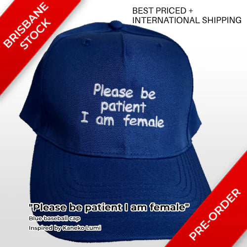 "Please be patient I am female" blue baseball cap / hat